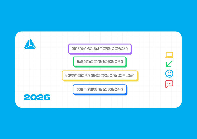 2026 წლის კიდევ ერთი სიახლე ხელოვნური ინტელექტის კურსია, რომელიც უფროსკლასელებს აძლევს შესაძლებლობას, დაეუფლონ მომავლის ერთ-ერთ ყველაზე მოთხოვნად უნარს და AI, იდეის შექმნიდან, მის ტექნიკურ განხორციელებამდე გამოიყენონ. კურსი პრაქტიკულ სწავლებაზეა დაფუძნებული და ვებ მენეჯმენტის, გრაფიკული დიზაინისა თუ AI პროგრამირების მიმართულებით მიღებული ცოდნის საფუძველზე, მოსწავლე კურსს რეალური ციფრული პროდუქტის შექმნით დაასრულებს.