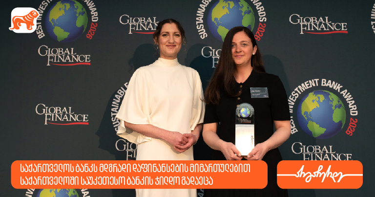 “Global Finance-ის მიერ საქართველოს ბანკისთვის მონიჭებული ჯილდო – “2026 წლის საუკეთესო ბანკი საქართველოში მდგრადი დაფინანსების მიმართულებით” – ჩვენი გრძელვადიანი სტრატეგიისა და სისტემური მუშაობის მნიშვნელოვანი აღიარებაა. ჩვენთვის მდგრადობა არ არის ცალკეული ინიციატივა – ის ინტეგრირებულია ჩვენს ბიზნეს მოდელში, რისკების მართვაში და პროდუქტების განვითარებაში. ვმუშაობთ მწვანე და კლიმატზე ორიენტირებული დაფინანსების გაფართოებაზე, ESG შეფასებების გაძლიერებაზე და ისეთი ფინანსური გადაწყვეტილებების შექმნაზე, რომლებიც ერთდროულად ქმნის ეკონომიკურ ღირებულებას და პოზიტიურ გარემოსდაცვით და სოციალურ გავლენას. ჩვენი წარმატება და Global Finance-ის მიერ მონიჭებული აღიარება საქართველოს ბანკის 9000-ზე მეტი თანამშრომლის ძალისხმევის შედეგია. ეს ჯილდო გვაძლევს დამატებით მოტივაციას, გავაგრძელოთ ლიდერობა საქართველოს ფინანსურ სექტორში მდგრადი განვითარების მიმართულებით”, – აღნიშნავს ანა ოსაძე, საქართველოს ბანკის ESG და მდგრადობის მიმართულების ხელმძღვანელი.