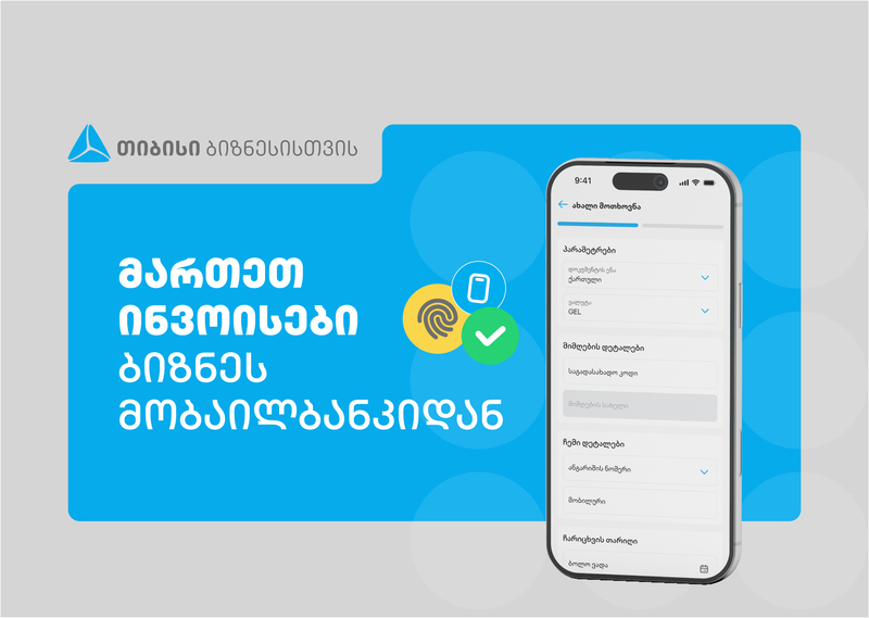 ფინანსების ერთ სივრცეში სამართავად, ასევე, ინვოისების მართვის ფუნქციონალით სარგებლობისთვის, გადმოწერეთ თიბისის ბიზნეს მობაილბანკი - https://tbc-business.onelink.me/Ierb/w9ok9vfz და გაიმარტივეთ ყოველდღიურობა.