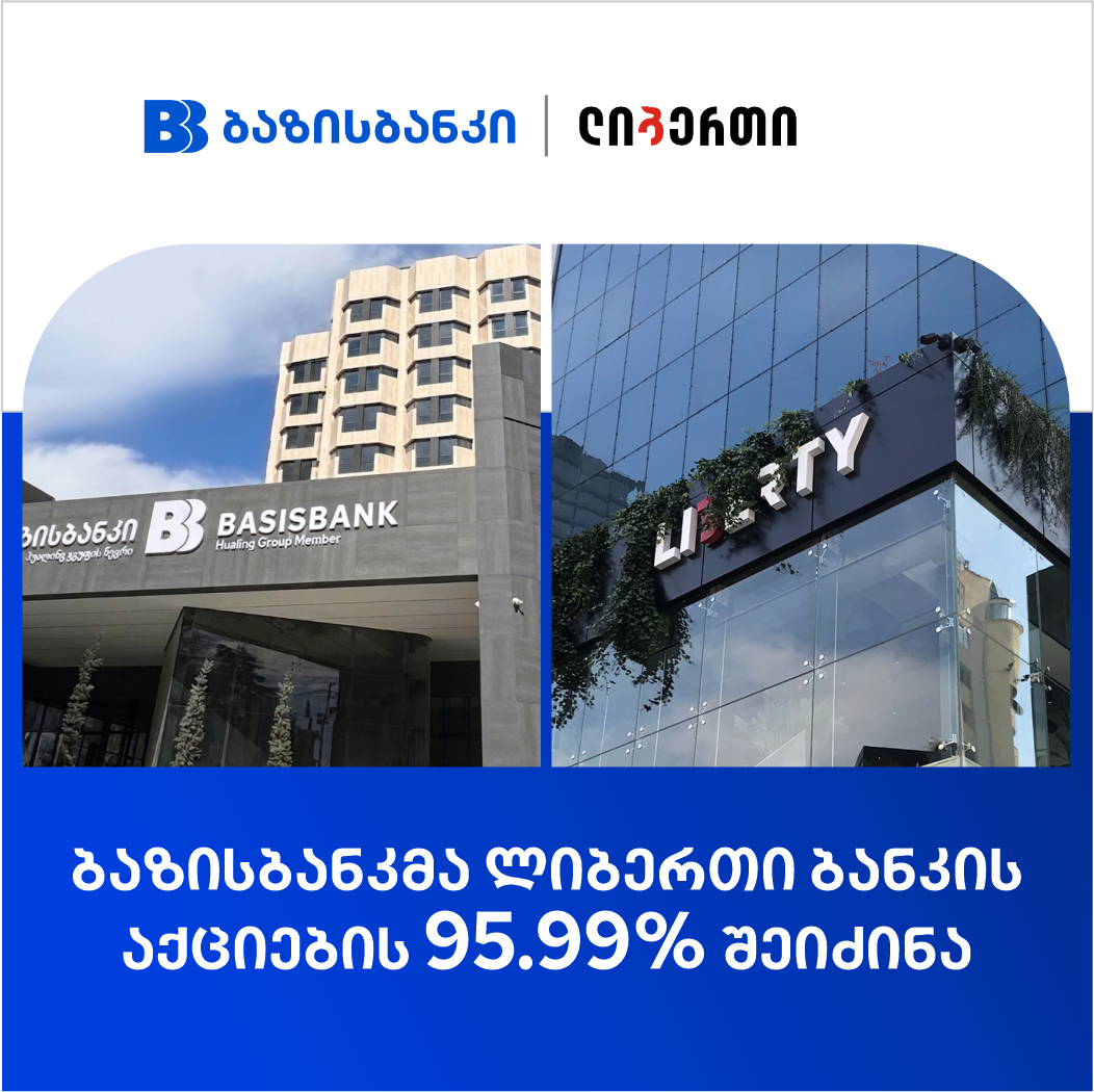 ბაზისბანკმა, რეგულატორის მხრიდან შესაბამისი თანხმობების მიღების შემდეგ, წარმატებით დაასრულა ლიბერთი ბანკის შეძენასთან დაკავშირებული გარიგება და ლიბერთი ბანკის აქციების 95.99% - ის მფლობელი გახდა.